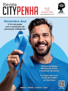 Beleza • Saúde • Cultura • Lazer Ano 20 nº 222 Novembro 2025 www.citypenha.com.br 90 Anos de Magia, Mauricio de Sousa, o construtor de sonhos O mistério da chuva no dia de finados em São Paulo Acesse a Versão Digital O fim da piada com a revolução da prevenção inteligente! Novembro Azul C c oN s I E c I N A DIA DA N E G R A < 20 de novembro